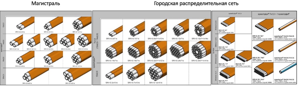 В новых районах крупных городов предлагается использовать уже готовые пучки (bundles) с микротрубками емкостью до 25 микротрубок/микрокабелей.