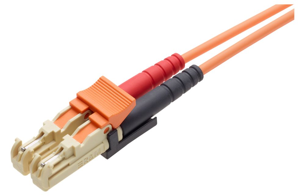 Patch cord FO, E-2000-Compact PC/UPC Grade Bm - E-2000-Compact PC/UPC Grade Bm, Multimode OM2 (G50), Duplex Figur 8 (2.7 x 5.6), FRLSZH, 2m |