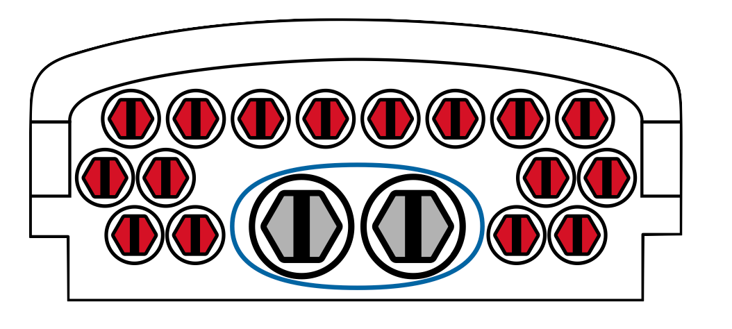 ECAM D18 - 1 шт. (овальный ввод под кабель диаметром 6-18 мм); ECAM S7 - 16 шт. (ввод под кабель диаметром 3-7 мм); Вместо овального ввода ECAM D18 есть возможность установить два ввода ECAM S12 (ввод под кабель диаметром 4-12 мм). |